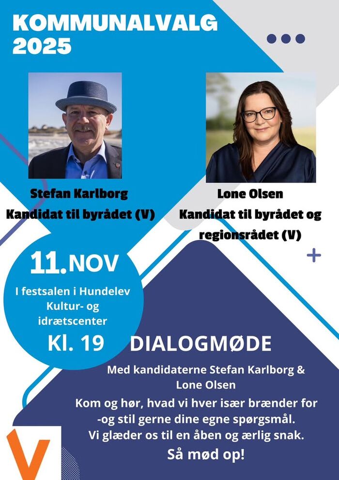 ‼️DIALOGMØDE‼️ Den 11. november kl. 19.00 finder du Stefan Karlborg - Venstre og mig i Hundelev Kultur- og Idrætscenter. Her kan du høre lidt om, hvem vi er, og hvad vi arbejder for – og ikke mindst stille…