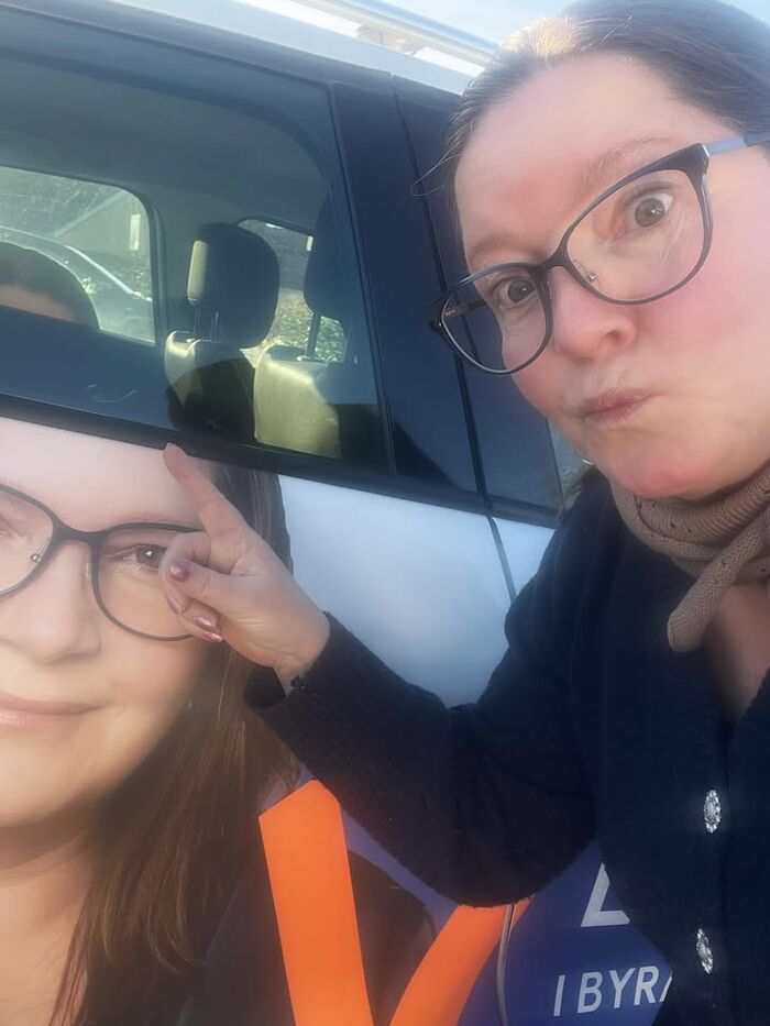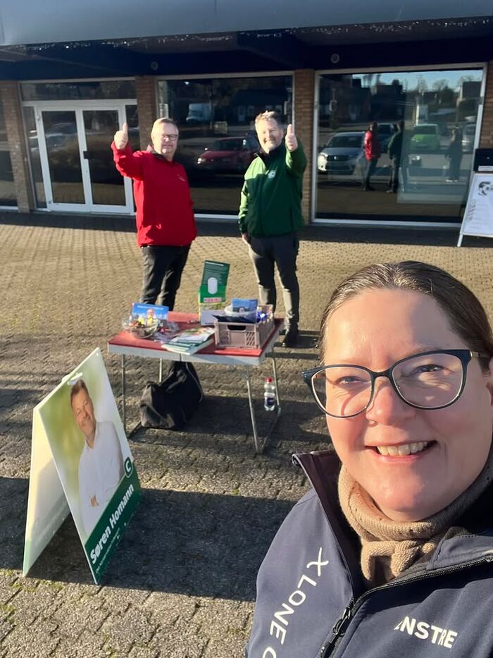 Med gode byrådskolleger i Tårs 💙❤️💚 Vi har brandudsalg - bolcher, kuglepenne, vingummi, isskrabere … og flyers 🥳